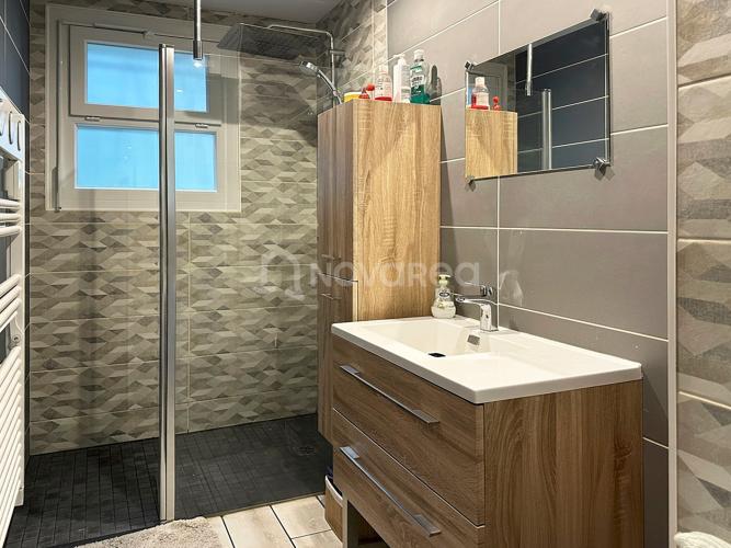 À l’étage, la pièce de vie propose une organisation agréable avec la cuisine et la salle à manger d’un côté, et le séjour de l’autre, permettant de structurer naturellement les espaces. Une chambre et une salle d’eau complètent ce niveau. En rez-de-chaussée, deux chambres supplémentaires offrent de nombreuses possibilités d’aménagement, accompagnées d’une arrière-cuisine et d’une buanderie fonctionnelles. Une quatrième chambre pourrait être aménagée dans les combles. Un grand garage ainsi qu’un carport extérieur viennent parfaire l’ensemble.