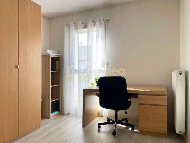 L'étage est composé de deux chambres confortables, d'une salle de bains ainsi que d'une mezzanine ouverte pouvant accueillir un bureau, un espace lecture ou une salle de jeux selon vos envies. Un garage ainsi qu’un stationnement privatif complètent le bien.