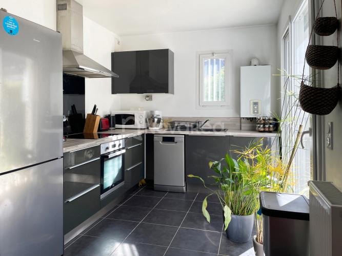 Le séjour est chaleureux et lumineuse et la cuisine ouverte et équipée prolonge agréablement la pièce de vie. L’ensemble s’ouvre naturellement sur un jardin arboré bien exposé et équipée d'une terrasse carrelée avec pergola.