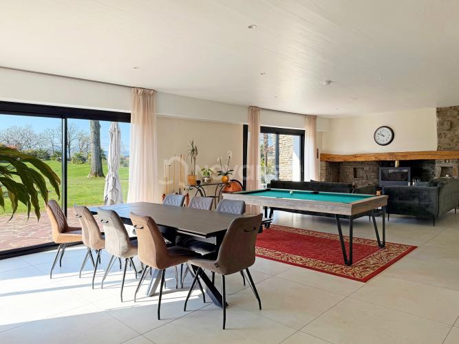 Dès l’entrée, les volumes impressionnent. La pièce de vie de près de 100 m², baignée de lumière, s’ouvre sur une terrasse avec une vue dégagée sur la chaîne des Pyrénées. La cuisine américaine entièrement équipée prolonge cet espace convivial. Une salle cinéma, une buanderie ainsi que plusieurs espaces de rangement complètent cet ensemble pensé pour le confort au quotidien.