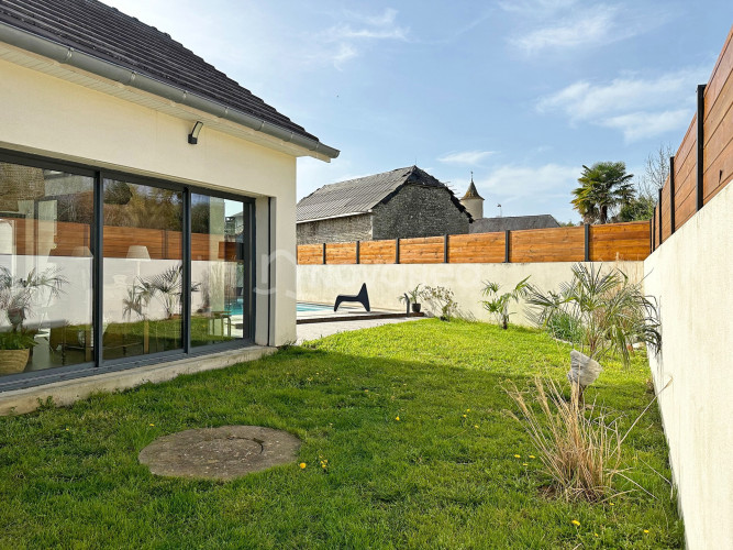 Cette villa est également très bien équipée : isolation technique par l'extérieur, pompe à chaleur air-air qui assure le chaud comme le froid dans la maison, volets persiennes électriques et double abri voiture.