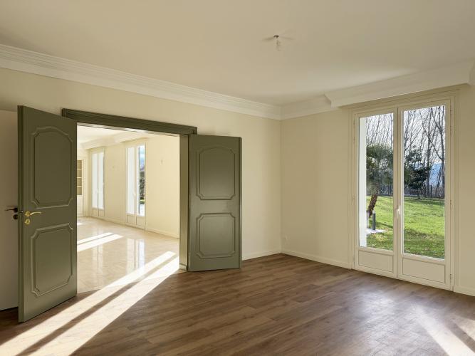 Entièrement remise au goût du jour, cette élégante demeure de 410 m² offre des volumes rares et une organisation pensée pour une vie de famille confortable et raffinée. Dès l’entrée, le ton est donné : un vaste hall distribue harmonieusement l’ensemble des pièces du rez-de-chaussée. Le séjour de près de 40 m², baigné de lumière, s’ouvre par de larges portes-fenêtres sur la terrasse et le jardin. La salle à manger communique avec une grande cuisine séparée, équipée d’un piano de cuisson remarquable, offrant également l’espace nécessaire pour un coin repas du quotidien, plus informel et convivial. Toujours à ce niveau, une suite parentale avec accès direct à la terrasse, ainsi qu’un bureau très lumineux, complètent ce premier étage pensé pour le confort et la fluidité des usages.