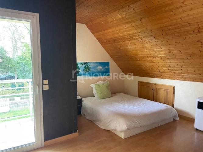 À l'étage, une mezzanine distribue 3 belles chambres avec balcon, dont une de près de 30 m², et une salle de bains rénovée.