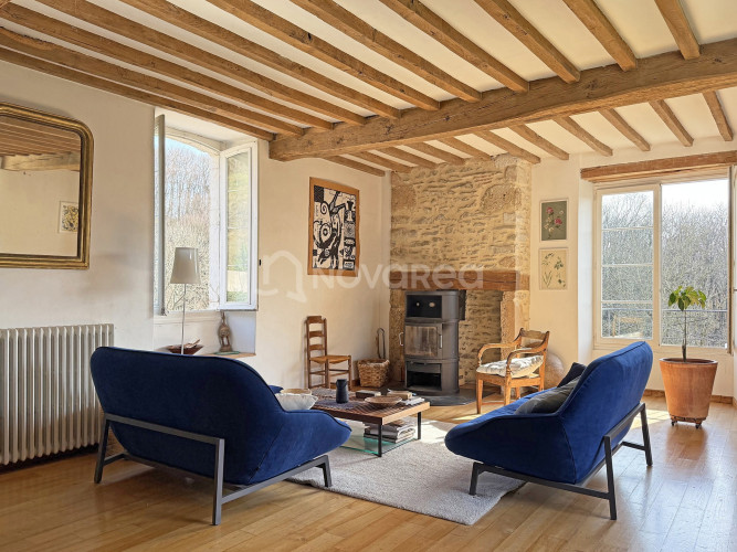 Nous vous invitons à découvrir cette propriété exceptionnelle, située sur les coteaux, qui comprend deux logements datant du XVIIIème siècle. Ce véritable trésor alliant authenticité, modernité et confort, est niché au sein d'un parc paysager et d'une fôret de plus de neuf hectares. La bâtisse principale, avec son style naturel et épuré, vous séduira. Elle se compose de sept pièces principales, d'une cuisine agréable, d'un séjour lumineux et de cinq chambres spacieuses. Le second logement, actuellement utilisé en gîte ou maison d'amis, dispose d'une grande pièce de réception et de trois vastes chambres. L'authenticité a été préservée: parquets, cheminées et poutres apparentes, tout est là !