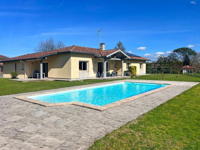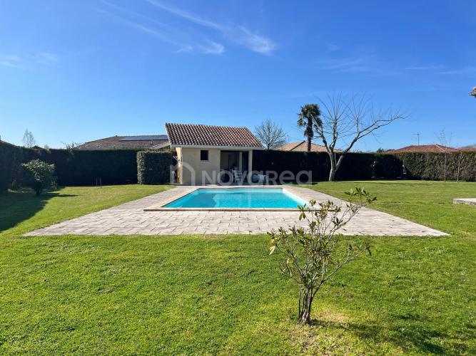 À l’extérieur, la propriété dévoile un agréable terrain arboré d’environ 1 800 m², agrémenté d’une piscine au sel et d’un pool house, parfaits pour profiter des beaux jours en toute sérénité.