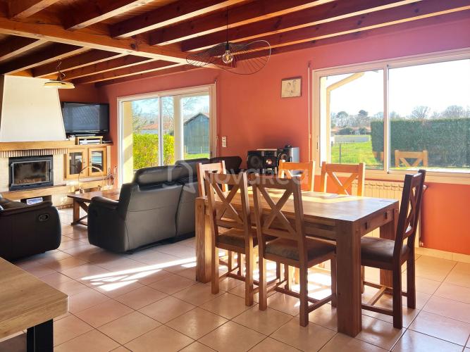 La maison s’organise autour d’un vaste séjour / salon lumineux avec cuisine ouverte, formant une belle pièce de vie traversante et conviviale. La partie nuit accueille quatre chambres équipées de placards, une salle de bains avec douche ainsi qu’un WC séparé. Un double garage et un cellier viennent compléter les espaces intérieurs.