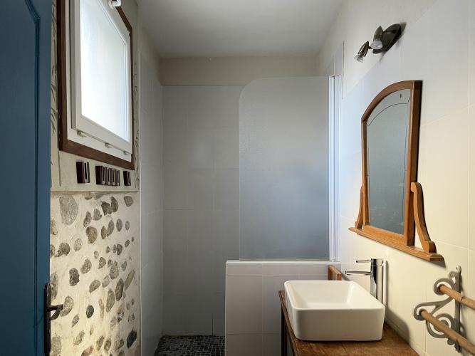 À l’étage, l’espace nuit se compose de trois chambres, ainsi que d’un espace bureau sur le palier, idéal pour le télétravail ou un coin lecture.